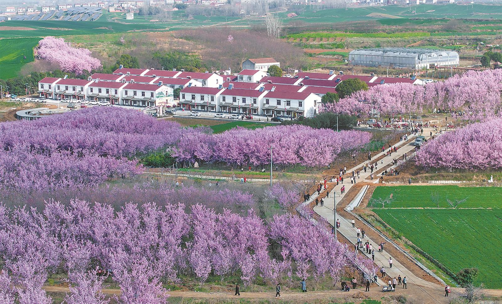 2月24日,襄州区龙王镇松树坡村樱花竞相绽放,吸引众多游客前来游玩。