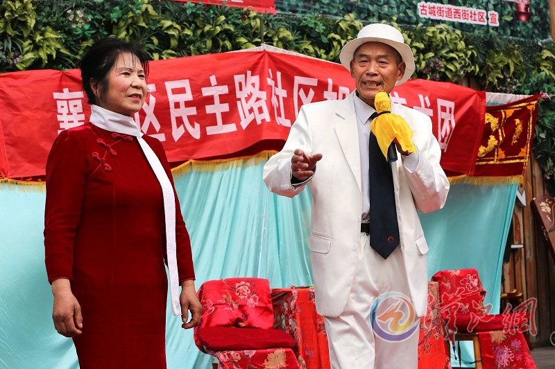 3月11日,在襄城西门桥附近,旭日艺术团的演员们正在为社区群众演出。旭日艺术团是由群众自发组织形成的民间艺术团体,团长是襄阳四中退休