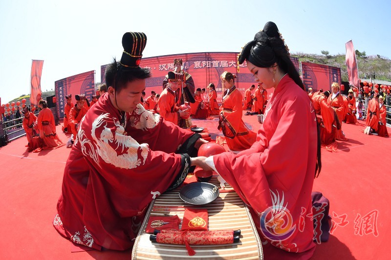 3月26日,我市举办汉式集体婚礼,再现中华传统文化之美。 全媒体记者安富斌摄