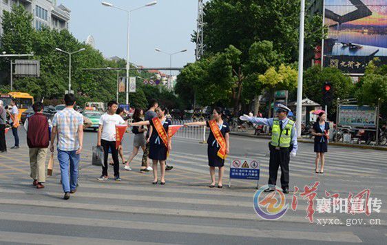 5日,移动襄城分公司与鼓楼警务平台开展志愿服务,在十字街引导行人文明过马路。 本报通讯员王珍姬 记者张伟摄
