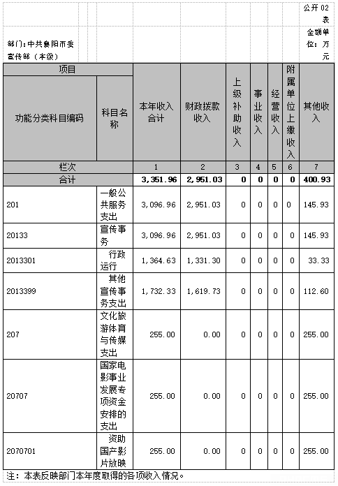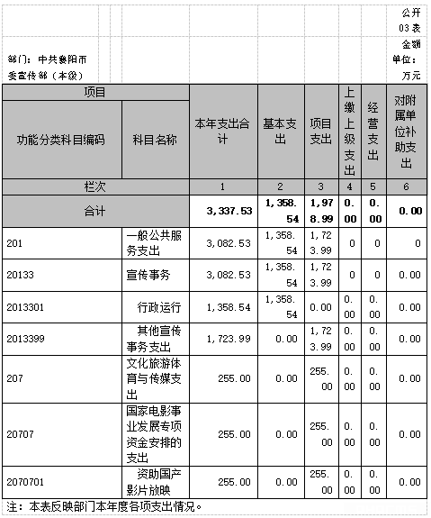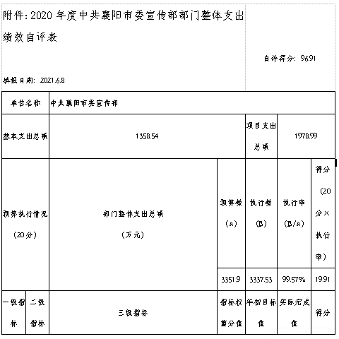第二部分 中共襄阳市委宣传部2020年度部门决算表