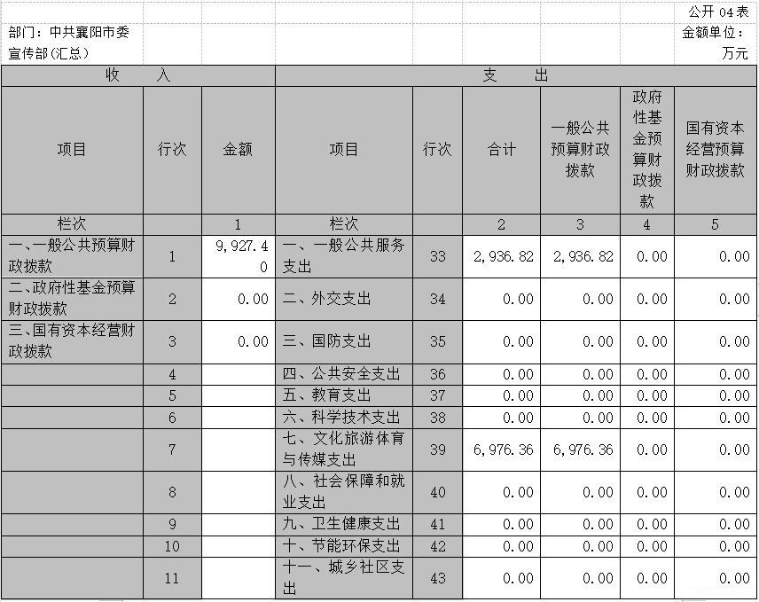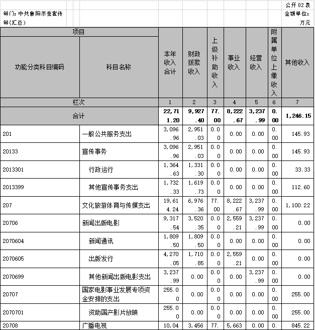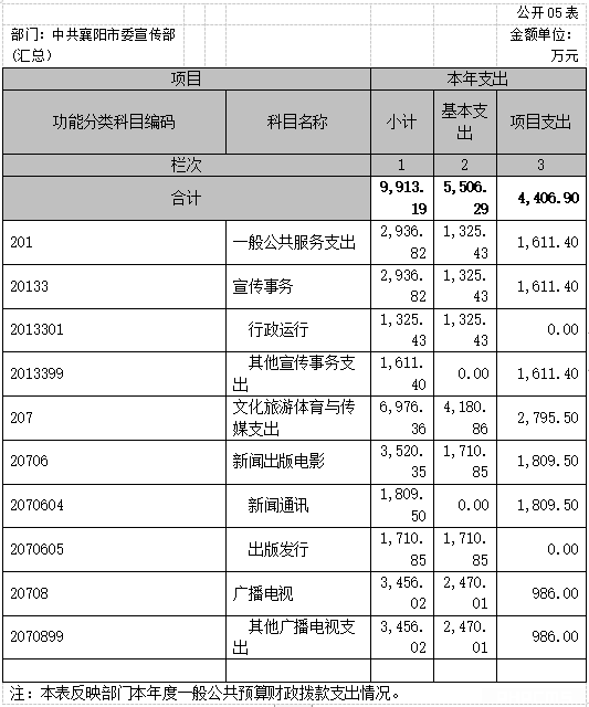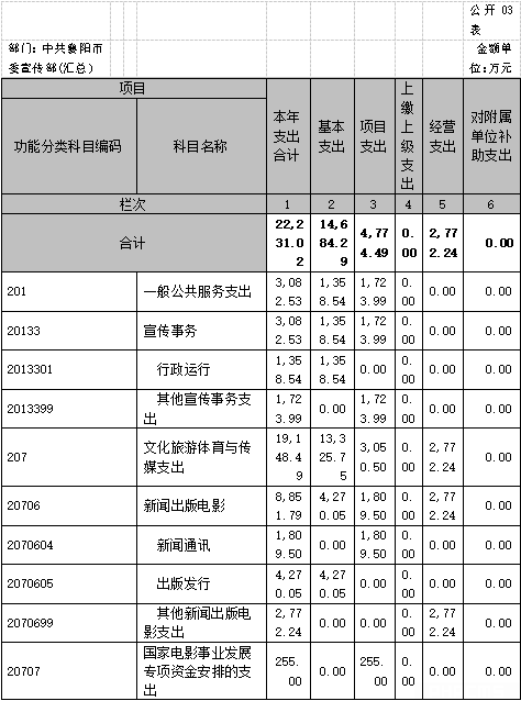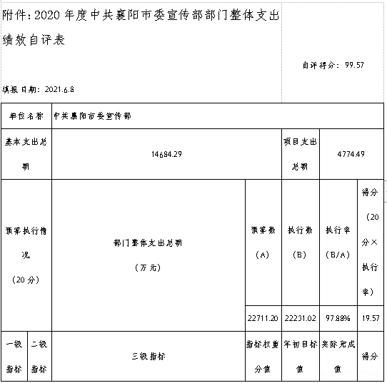 第二部分 中共襄阳市委宣传部2020年度部门决算表