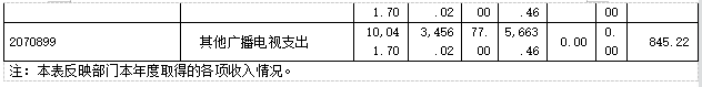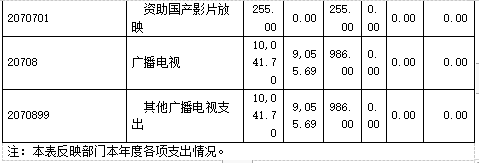 5.新闻出版电影(款)广播电视(类)其他广播电视支出(项)。年初预算为3837.59万元,支出决算数3456.02万元,完成年初预算数的90.05%。决算数小于预算数的主要原因是襄阳广播电视台响应财政局“过紧日”要求,主动压减项目类一般公共支出。