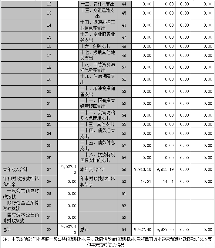2020年度收支决算总计22711.2万元,较上年度减少108.03万元,下降0.5%,较年初预算数减少3603.37万元,下降13.63%,主要原因主要是本部门各单位牢固树立“过紧日子”,大力压减一般性支出。