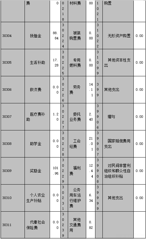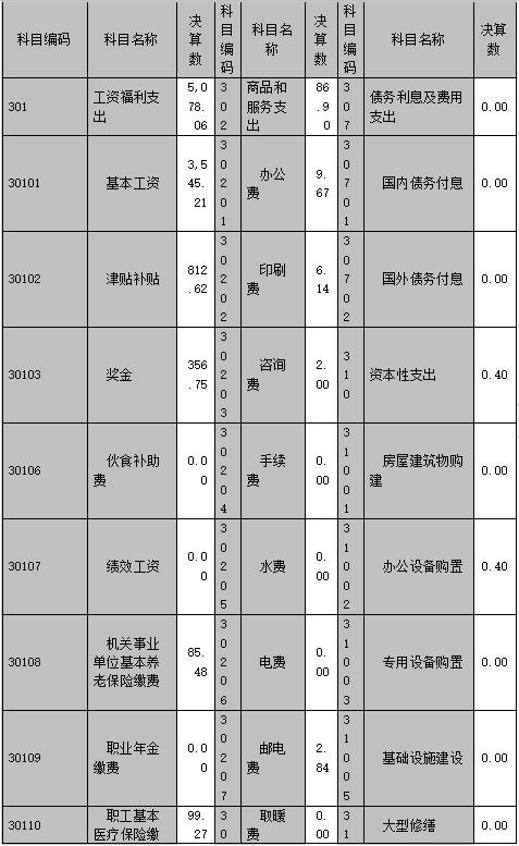 办公费9.67万元、印刷费6.14万元、手续费0万元、水费0万元、电费0万元、邮电费2.84万元、取暖费0万元、物业管理费0万元、差旅费5.94万元、维修(护)费0.85万元、租赁费0万元、会议费1.29万元、培训费0万元、公务接待费1.35万元、专用材料费0万元、劳务费14.10万元、委托业务费2.4万元、工会经费21.01万元、福利费1.28万元、公务用车运行维护费6.34 万元、其他交通费用0.82万元、税金及附加费用0万元、其他商品和服务支出1.06万元、办公设备购置0.39万元、专用设备购置0万元。
